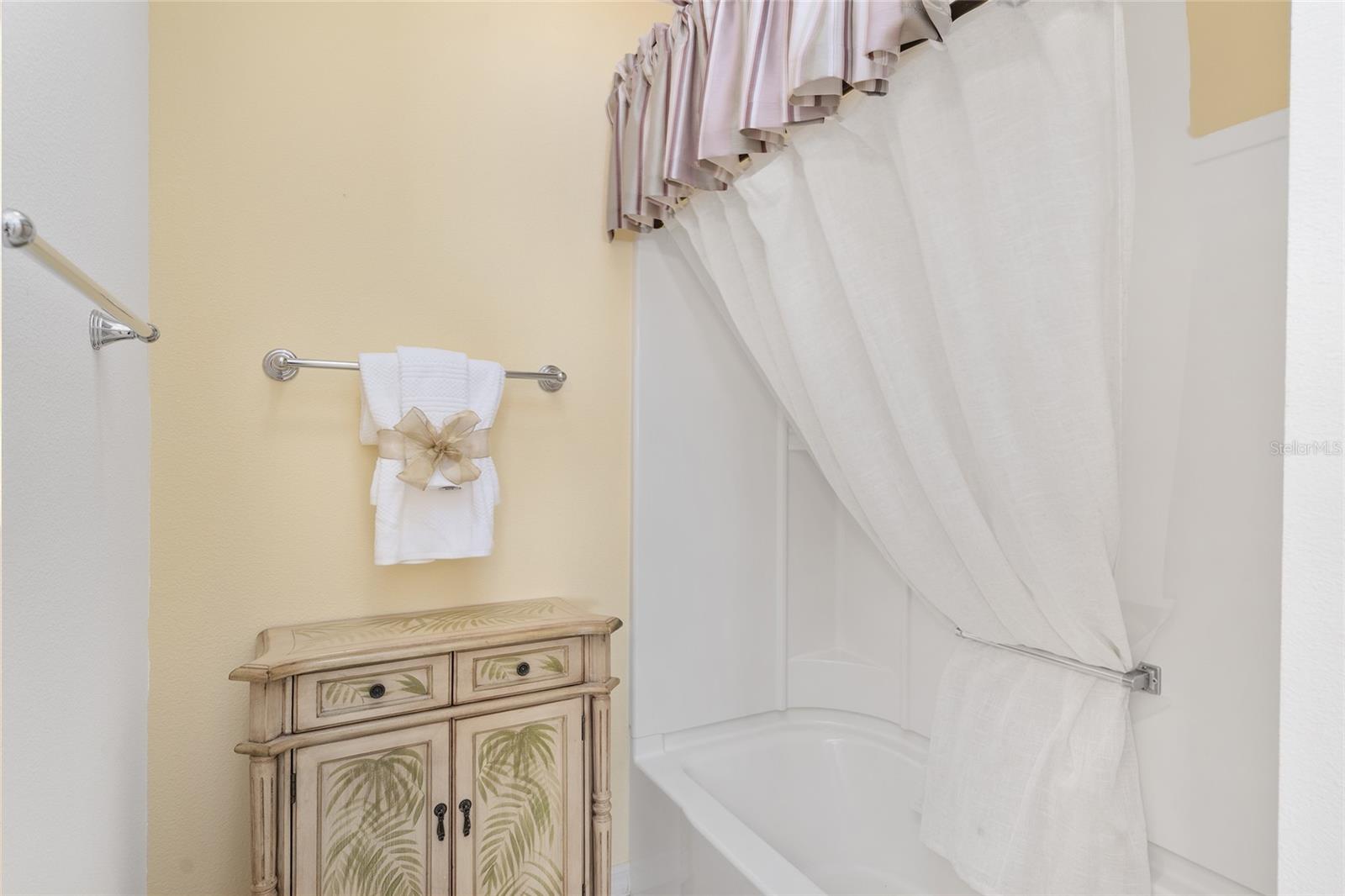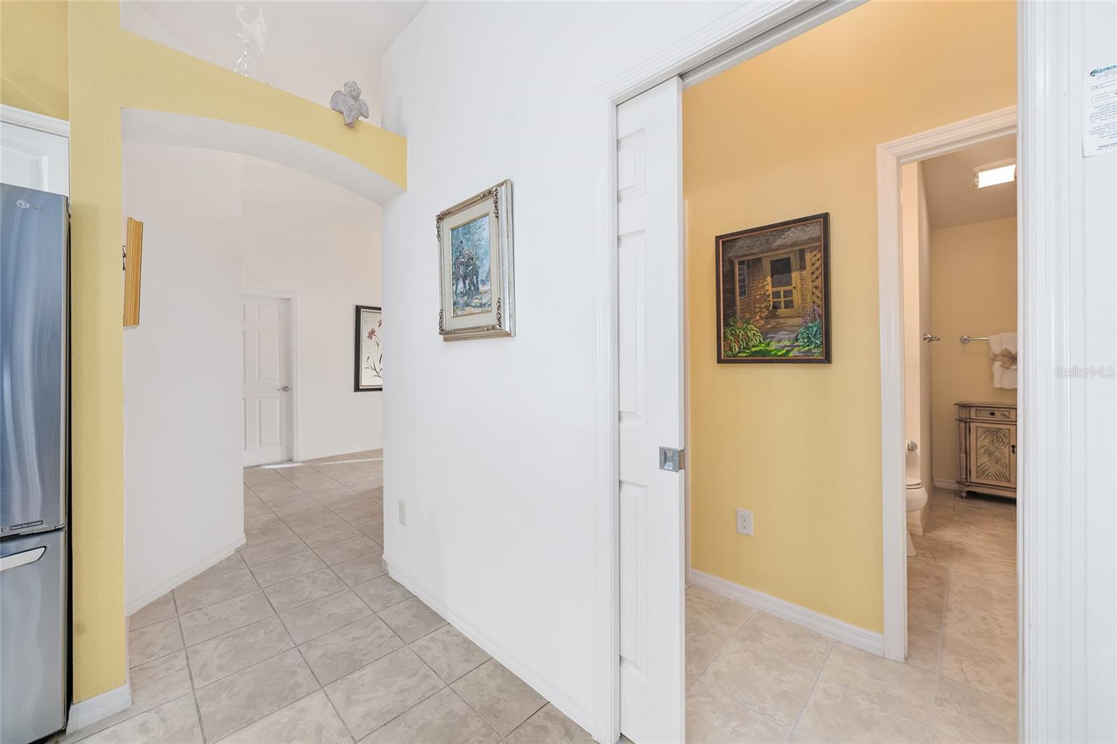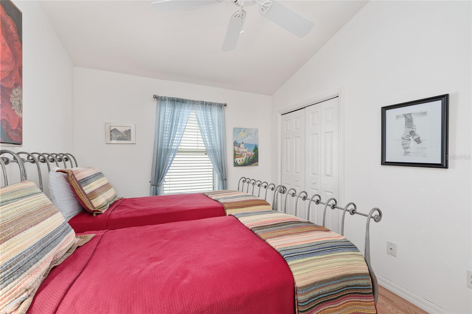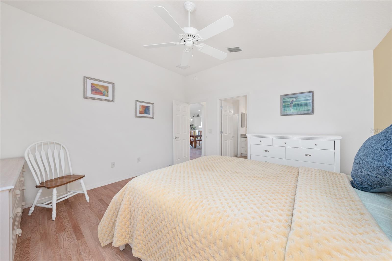 Experience refined Florida living in this TURNKEY, FURNISHED, immaculately maintained courtyard villa nestled in the highly sought-after VILLAGE OF PENNECAMP. This prime location is situated between SUMTER LANDING and BROWNWOOD PADDOCK SQUARE- a golf cart ride away from shopping, dining, and entertainment. Designed for both comfort and style, this OPEN-CONCEPT floor plan seamlessly connects the living room and dining area to the SPACIOUS KITCHEN which features abundant WHITE CABINETRY with PULLOUTS and a convenient BREAKFAST BAR – ideal for everyday living and entertaining. This 3-bedroom, 2-bath residence features soaring VOLUME CEILINGS and a BRIGHT, OPEN LAYOUT with NO CARPETING throughout. Laminate flooring and ceramic tile add a modern, cohesive feel. Recent upgrades—including a 2023 ROOF and 2019 HVAC—provide lasting peace of mind. Step outside to your FULLY FENCED, PRIVATE PATIO WITH BIRDCAGE—an inviting retreat ideal for morning coffee, evening relaxation, or hosting guests. This home is less than a 10 minute GOLF CART RIDE to 9 EXECUTIVE GOLF COURSES AND 2 CHAMPIONSHIP GOLF COURSES. With resort-style pools, recreation centers, tennis, pickleball, country clubs, dining, and shopping-- an exceptional lifestyle in one of The Villages’ most desirable locations awaits you! A 2015 YAMAHA GOLF CART with under 3,000 MILES is included. Garage can accommodate one car, a golf cart, and has storage cabinet.